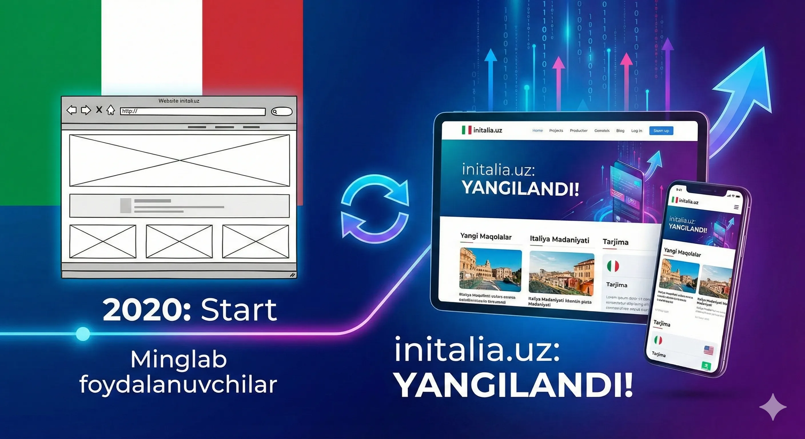 Uzoq muddatli tanaffusdan so'ng initalia.uz sayti yangilangan ko'rinishda qaytdi.